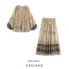 Kaslead New Women clothes Western Style Fashion Knot Decoration Print Shirts Culottes 4437086 4886072