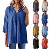 Women Shirt V-Neck 3/4 Sleeve Loose Fit Lace Splicing Tops Solid Color Loose Fit Breathable Casual Shirt