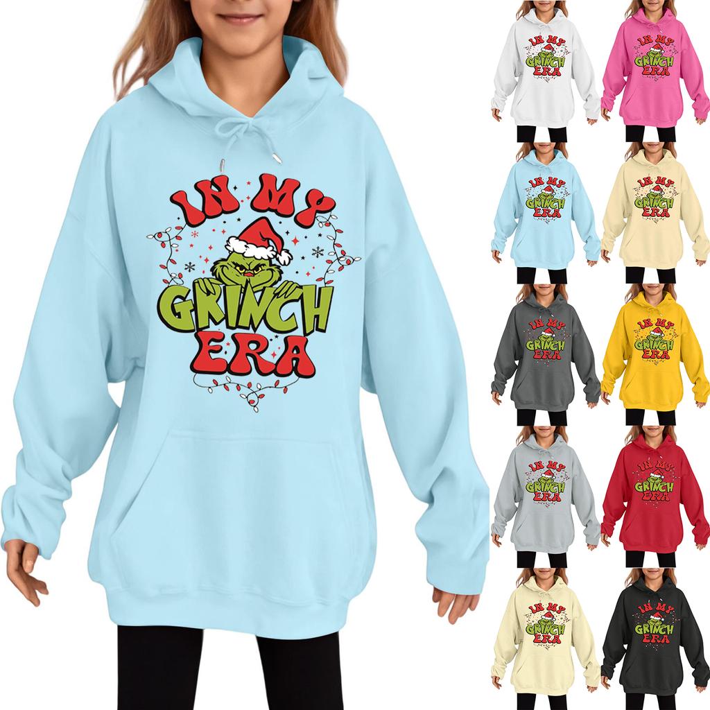 Children's Fashionable Casual Long-sleeved Loose Christmas Print Pullover Hooded Sweatshirt