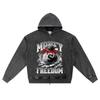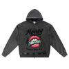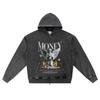 DTG print Knitted Denim Zip-Up Hoodie Money Power Respect Brother Print Zipper Hoodies