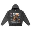 DTG print Knitted Denim Zip-Up Hoodie Blaze Brother Print Zipper Hoodies