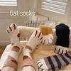 1-20Pairs Cute Cat Paw Floor Socks Coral Velvet Thickened Fleece Mid-calf Socks Warm Indoor Socks for Women Fall Winter Wear