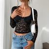 ახალი სექსუალური მაქმანებიანი ბადისებრი მკერდი თევზის ძვლის კვადრატული კისრის გრძელმკლავიანი ქალის თეთრეული