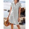 Women's Casual Cotton And Linen Striped Printed Short Sleeved Shirt Dress
