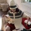 spring autumn color matching Knitted Sweater vintage printing Short Cardigan jacket Loose Crew Neck korean casual Sweaters Women