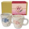 Ceramic Ai Hidamari Cat Rice Bowl and Teacup with Poinsettia and Tenpo 23202 Chopsticks,