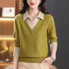 Faux Two Piece Long Sleeve Knit Sweaters Fashion Lapel Shirt Pullover Blouse Women Autumn Winter Tops