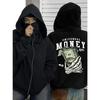 Street Trend Letter Money Printing Hoodie For Men Pocket Drawstring Pullovers Fleece Warm Sweatshirts Autumn Comfortable Clothes