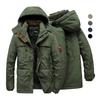 Liela izmēra daudzkabatu vīriešu ziemas jaka, flīsa odere āra parka mētelis ar kapuci vējjaka bieza silta virsdrēbes