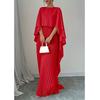 Magic Queen Solid Loose Batwing Sleeve Pleat Irregular Shawl Design Elegant Jumpsuit Long dress Dresses