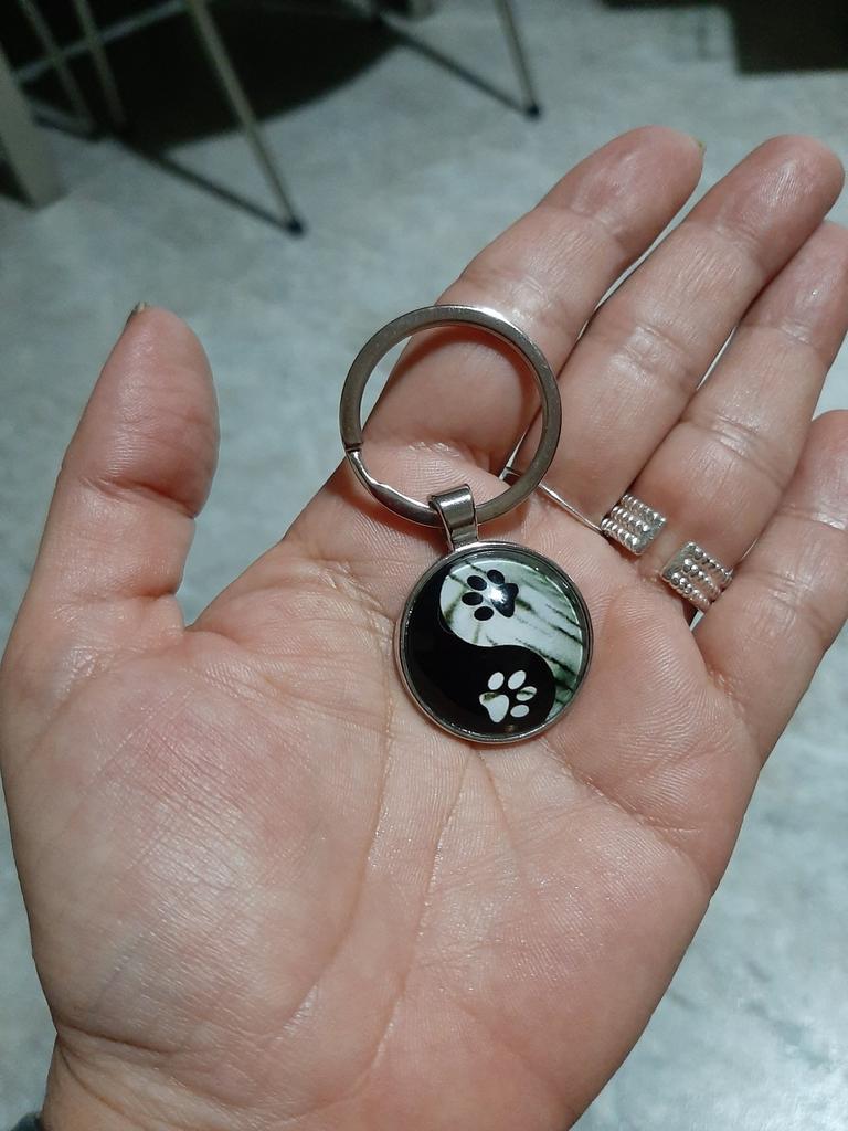 Twinkle Trinket Creative Yin Yang Tai Chi Glass Cabochon Pendant nøkkelring nøkkelringholder gave