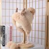Ny strikket lue i ull med gevir, plysj ørevarmer, hodeplagg, koreansk versjon, tre dusk, fortykket varm lue for kvinner