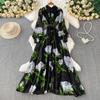 Godterifarger Sommer Solid Grønn Rosa Midi-skjortekjole Elegant fransk polokrage Fritidskjole Fest A Line Kjoler SR464