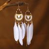 Feather Long Tassel Earrings, Fashionable Ethnic Style Retro, Oil Dripping Pattern Leaf Rice Bead Earrings