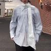 INCERUN Menn Turn Down Krage Langermet knapper Topper Uformelle stripete Patchwork skjorter