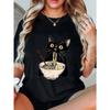 Fashion Women Cartoon Cat Eating Noodles Print T Shirt Funny Casual O-neck Short Sleeves T-shirt Summer Female Tee Shirt
