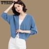 Knitted Cardigan Women's Thin Outer Outfit Solid Color Shawl Short Style Autumn Knitted Sweater Jacket Casual Sweater Cardigan