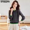 Artistic Retro Women's Knitted Sweater Single Breasted Contrasting Color Round Neck Women's Cardigan Sweater