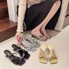 Slides Flip Flops Sandals Open Toe Woman Slippers High Up To 5cm Heel Summer Rhenstone Shoes for Women 2024 Crystals Jewels Sale