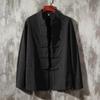 Herre Vår og Høst Pluss Størrelse Ensfarget Kinesisk Lin Langermet Plate Spenne Bomullsskjorte Stående Krage Retro Skjorte
