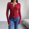 Korean Chic Design Off-Shoulder Red Slim Fit Long-Sleeve Sweater for Adults
