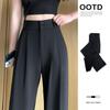 Women's Summer Wide-Leg Drape Pants - Black Straight Trousers