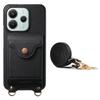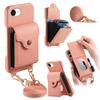 For iPhone 16e Case Mirror Card Holder Litchi Texture Leather Phone Back Cover with Long Strap