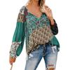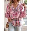 2025 Autumn, Bohemian Vacation Style, Printed, Lace Up, Long Sleeved Top, Women's Shirt, Casual Wear, Comfortable Top