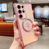 For Samsung Galaxy S23 Ultra Case Compatible with MagSafe Electroplated TPU Phone Cover Hollow Love Hearts