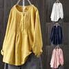 Kvinner Høst Uformell Langermet O-hals Løs Bluse Vintage Harajuku Solid skjorte i bomull og lin Oversized topper