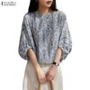 ZANZEA Women Casual Round Neck Summer 3/4 Sleeve Print Blouse
