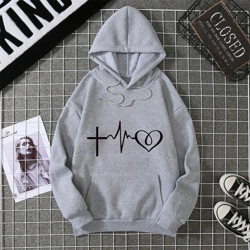 Women's Hoodie High Street Unisex style Double Pockets Sweatshirts Outerwear Heart Print Women's Clothing