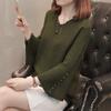 Three-dimensional flower knitted sweater autumn and winter new horn sleeve design new niche crochet V-neck bottoming sweater