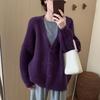 Korean Fashion Autumn Winter Women Knitted Sweater V Neck Oversized Blue Knitting Cardigan Baggy Ladies' Sweet Warm Outerwear