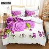 Purple Flower Duvet Cover Set Double Bed 200x200 Thin Floral Bedding Set 3PCS 2PCS with Pillowcase Single Quilt Cover 220x240