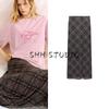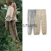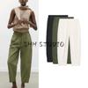 Autumn New Women clothes Lace-up Decoration Fluffy Pants Mid-Waist Ramie Blended Plaid Bloomers 8369034