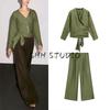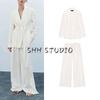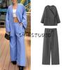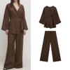 With Belt round Neck Kimono Coat 8426329 Linen Blended Balloon Mid Waist Pants 7627242