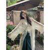 Kumikumi Pure Desire Style Suit Temperament Long Sleeve Knitting Cardigan Women's Autumn Lace Sling Dress Two-piece Set