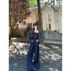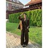 Retro Cardigan Short Outerwear Plaid Sling Vest Suit Women Autumn Straight Wide Leg Pants Casual Pants Three-Piece Suit