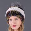 Women's Fur Hat with Rex Rabbit and Fox Fur Pompon for Autumn and Winter