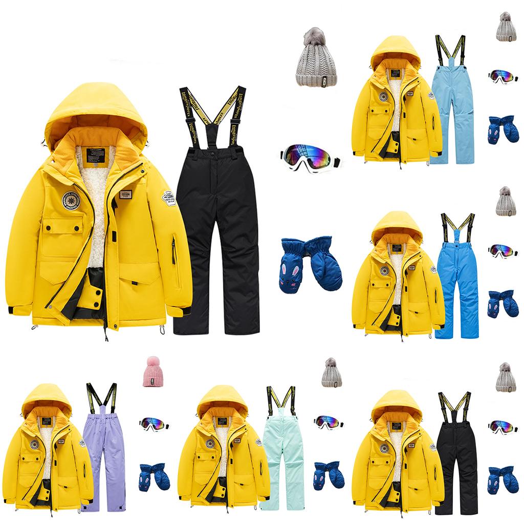 Children's Fashion Skiwear Set Boys' And Girls' Thickened Waterproof Thermal Ski Suit Five-Piece Outfit With Jacket And Trousers