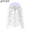 BITCED Hooded Leather Jacket Two-Piece Set with Detachable Lining Plus Size Leather Jacket for Women Spring/Autumn Outerwear