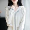 Introducing a chic knitwear piece designed for the modern woman's autumn and winter wardrobe. This sweater features a classic college style with a navy striped collar that adds a touch of elegance. Crafted from high-quality artificial silk material, it offers a luxurious feel and an impeccably slim fit. The sweater's thin construction makes it ideal for layering during cooler months, while its sleeveless design ensures versatility and ease of movement. Perfect for achieving a sophisticated yet casual look, this knitwear piece seamlessly blends comfort with style.