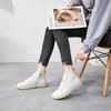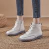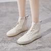 Leather short boots women's 2025 casual versatile flat bottom side zipper high top white shoes women's Internet celebrity popular boots velvet