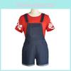 This cosplay jumpsuit features a design inspired by popular animated characters, crafted from a blend of spandex and denim fabric. Suitable for stage performances or themed events, it offers durability and flexibility with a moisture-resistant finish. Easy to maintain, simply wipe clean with a damp cloth.