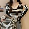 Korean College Style Striped Patchwork Two-Piece Women's Knitted Sweater