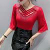 Spring New Style Versatile Polka Dot Long-sleeved Mesh Base Shirt for Women To Look Slim and T-shirt Pullover Top