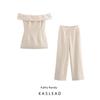 Kaslead New Arrival Women's Clothing Fashion Style Fashion V-neck off-Shoulder Top and Trousers 5070004 5070005