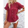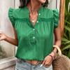 Жіноча літня мода стоячий комір дерев'яні сережки рукав плісирований однобортний вільний топ